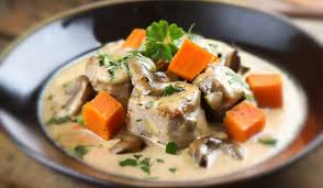 Mettre les petits oignons à tremper dans un bol d'eau froide. Couper le veau en gros dés. Peler les carottes et les couper en gros bâtons. Peler les oignons jaunes, les piquer avec les clous de girofle. Laver et émincer en julienne le poireau et le céleri, et les mettre en bouquet garni avec le thym et le laurier. Eplucher les gousses d'ail. Dans une cocotte-minute, placer la viande, les carottes, le bouquet garni, les oignons piqués et les gousses d'ail. Couvrir d'eau, assaisonner et faire mijoter pendant 1 h. Découper les champignons en lamelles. Egoutter les champignons. Bouillir 20 cl d'eau et le jus du demi-citron. Saler et y plonger les champignons pendant 3 min à feu vif. Egoutter et éplucher les petits oignons. Les faire "glacer" dans une casserole avec 30 g de beurre et 1 verre d'eau. Saler et laisser cuire 25 min. Dans une casserole, faire fondre le reste de beurre et y ajouter la farine. Remuer et laisser roussir quelques minutes, en fouettant. Laisser refroidir. Lorsque la viande a fini de mijoter, récupérer 1 litre de bouillon, le filtrer et le verser dans la casserole contenant le roux beurre + farine en fouettant. Porter le tout à ébullition et laisser chauffer 5 min à feu doux. Assaisonner. Battre les jaunes d'oeufs et y incorporer la crème. Ajouter une louche de bouillon, délayer et reverser le tout dans la casserole. Egoutter la viande, les carottes, les oignons et les champignons, les recouvrir de la sauce bien chaude. Arroser avec le jus du 1/2 citron et servir. On peut aussi réserver le tout dans une casserole et réchauffer à feu très doux avant de servir.